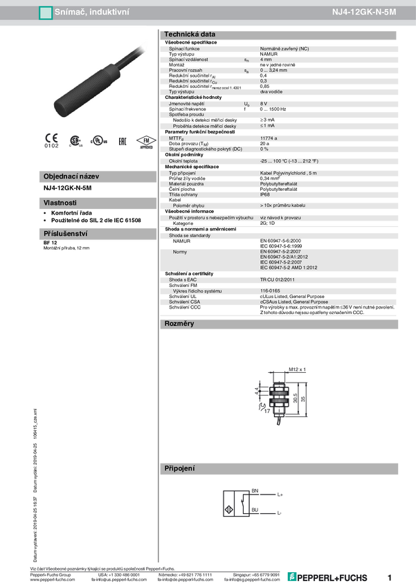 Pepperl+Fuchs Czujnik indukcyjny NAMUR NJ4-12GK-N-5M x2xG1xxD