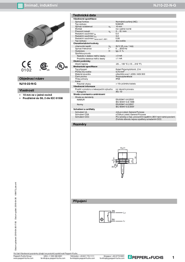 Pepperl+Fuchs Czujnik indukcyjny NAMUR NJ10-22-N-G x2xG1xxD