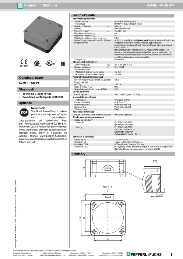 Pepperl+Fuchs Czujnik indukcyjny NAMUR NJ40-FP-SN-P1 x2xG1xxD