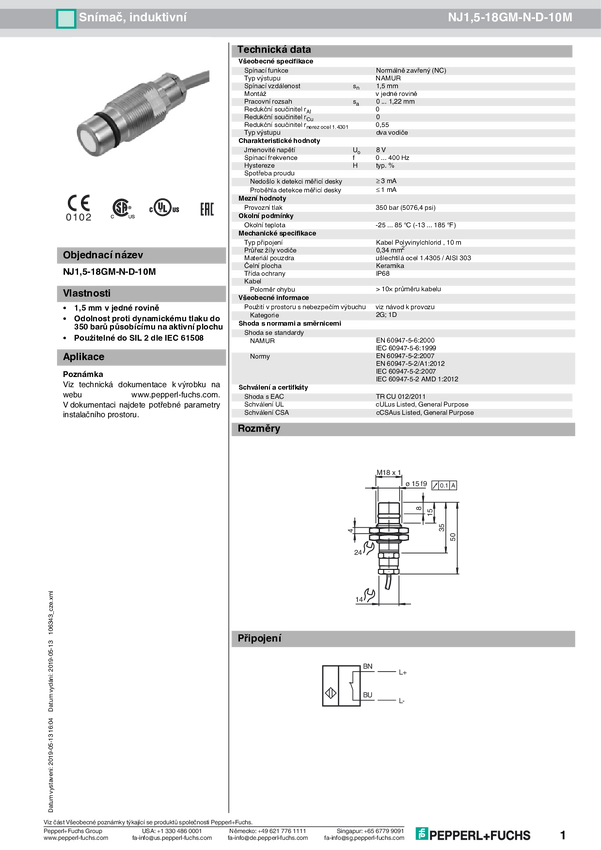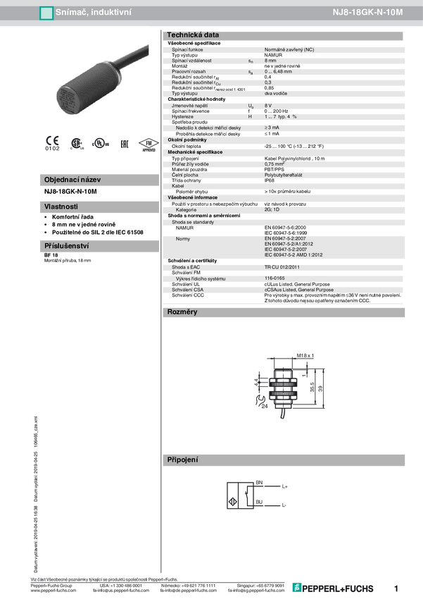 Pepperl+Fuchs Czujnik indukcyjny NAMUR NJ8-18GK-N-10M x2xG1xxD