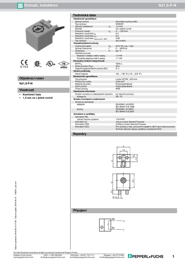 Pepperl+Fuchs Czujnik indukcyjny NAMUR NJ1,5-F-N x2xG1xxD