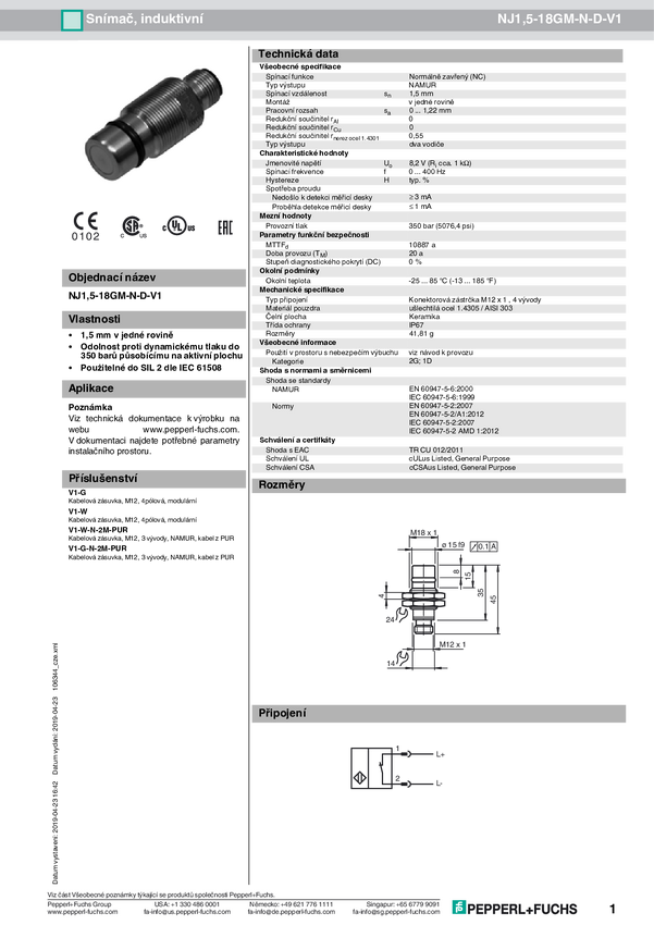 Pepperl+Fuchs Czujnik indukcyjny NAMUR NJ1,5-18GM-N-D-V1 x2xG1xxD