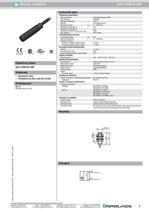 Pepperl+Fuchs Czujnik indukcyjny NAMUR NJ4-12GK-N-10M x2xG1xxD