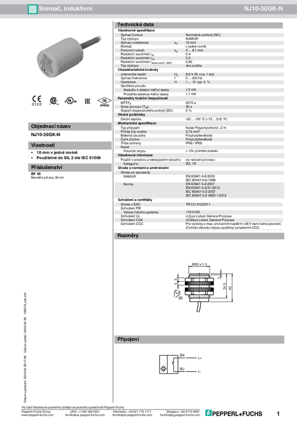 Pepperl+Fuchs Czujnik indukcyjny NAMUR NJ10-30GK-N x2xG1xxD