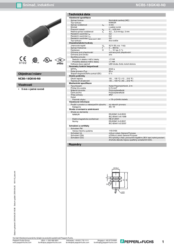 Pepperl+Fuchs Czujnik indukcyjny NAMUR NCB5-18GK40-N0 x2xG1xxD
