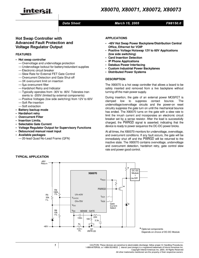 Hot Swap Controller with Advanced Fault Protection and Voltage Regulator Output