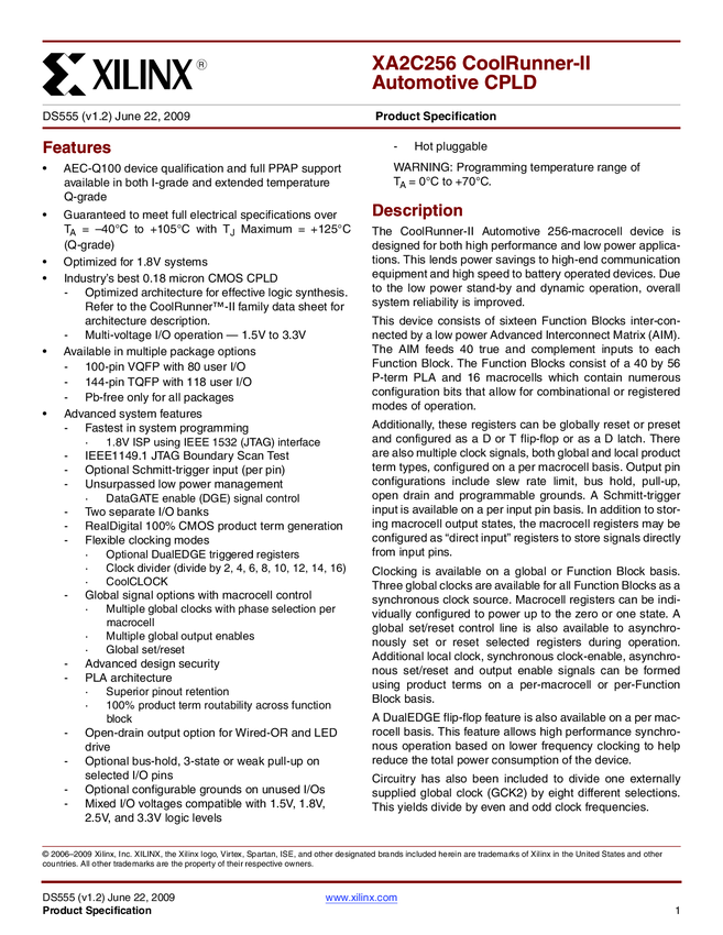 CPLD CoolRunner-II 6K Gates 256 Macro Cells 152MHz 0.18um Technology 1.8V 100-Pin VQFP