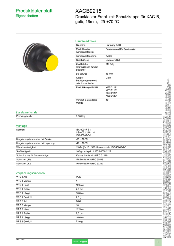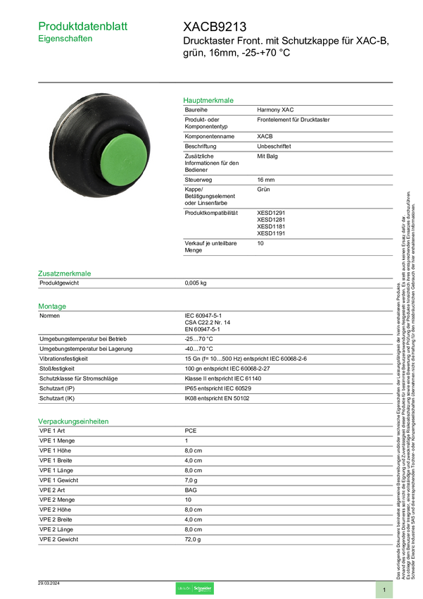 Schneider Electric XACB9215 Element przedni z przyciskiem 1 szt.
