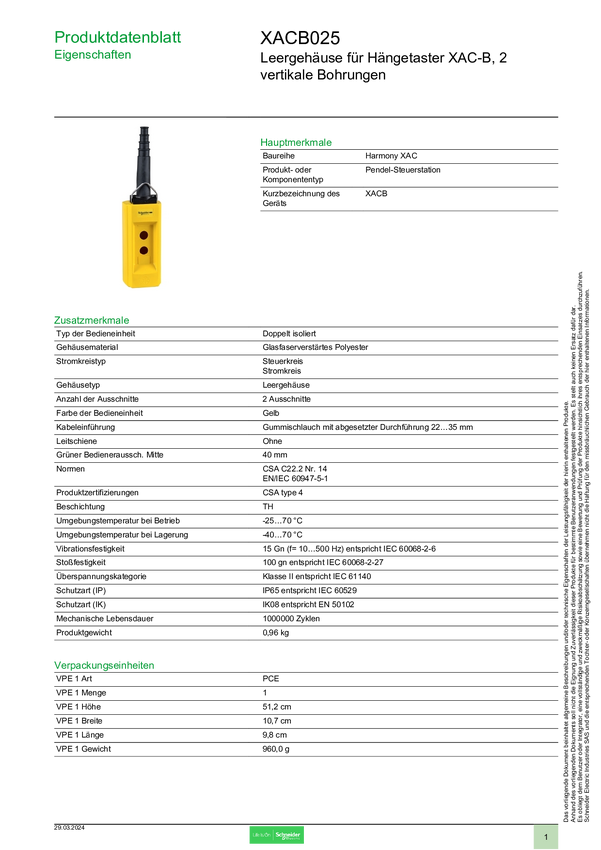 Pusta obudowa Schneider Electric XACB025 1 szt.