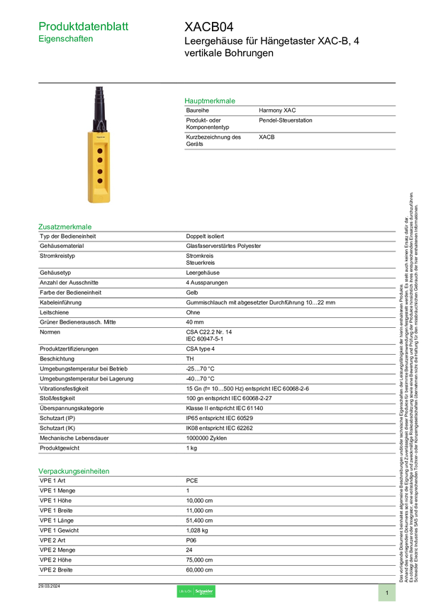 Pusta obudowa Schneider Electric XACB04 1 szt.