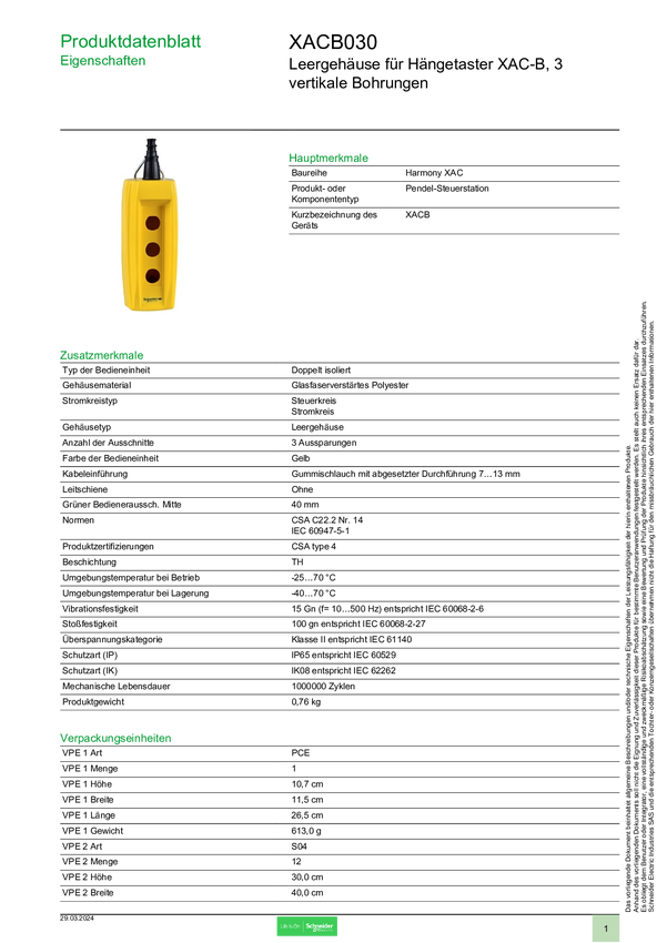 Pusta obudowa Schneider Electric XACB030 1 szt.
