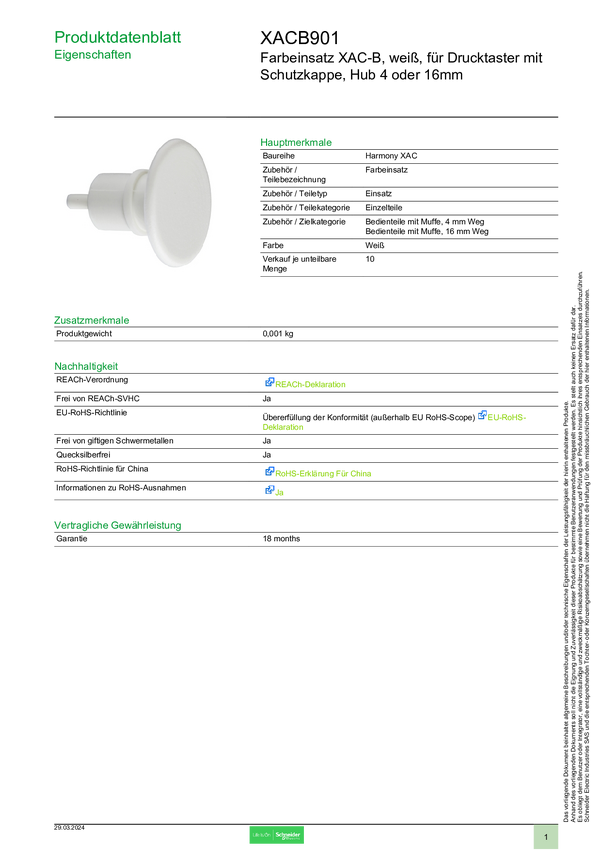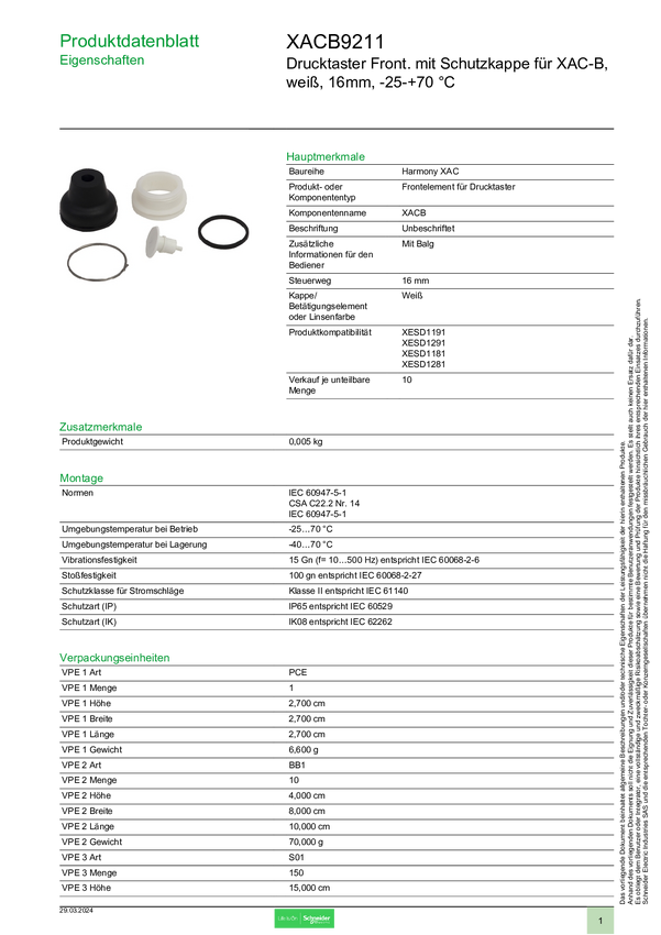 Schneider Electric XACB9116 Element przedni z przyciskiem 1 szt.