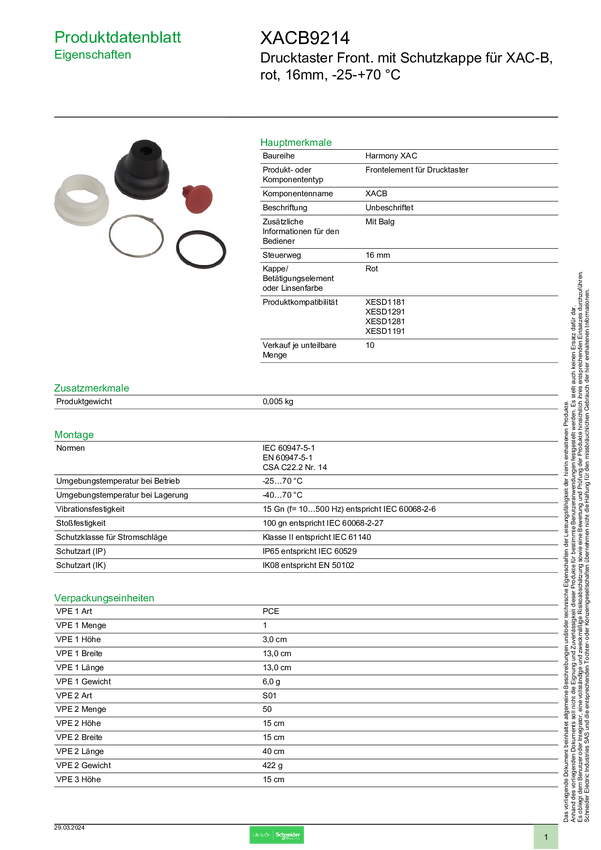 Schneider Electric XACB9214 XACB9214 Element przedni z przyciskiem 1 szt.