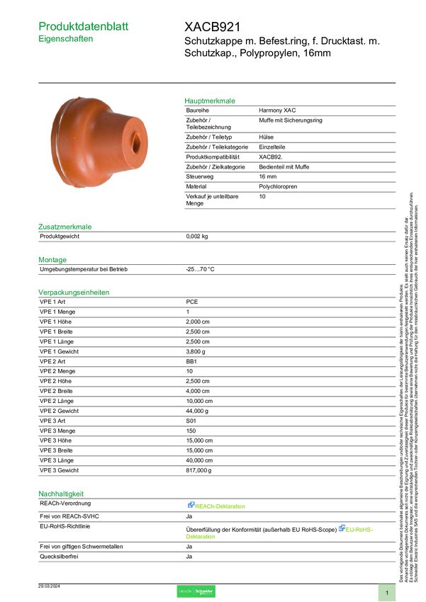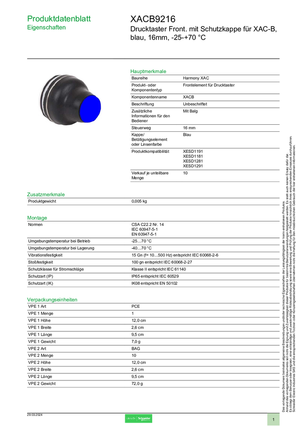 Schneider Electric XACB9216 Element przedni z przyciskiem 1 szt.