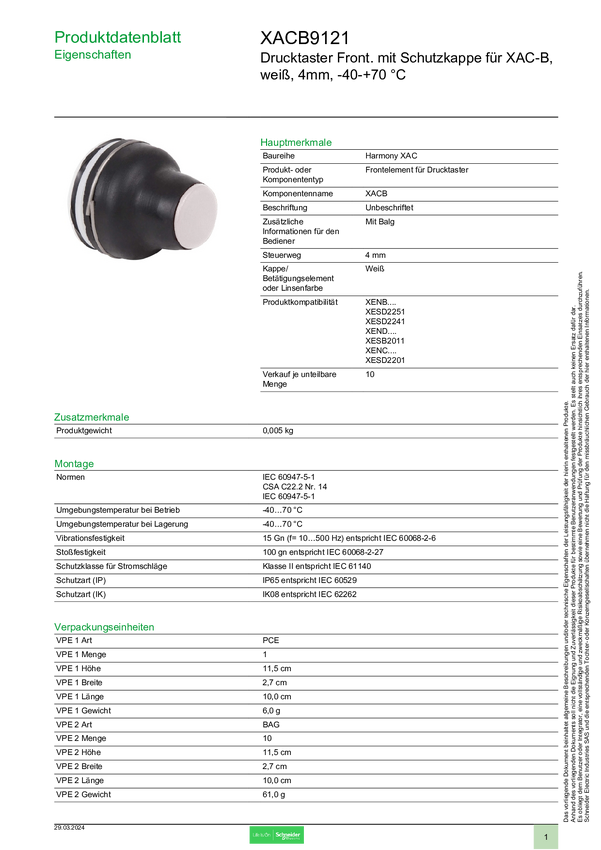 Schneider Electric XACB9121 Element przedni z przyciskiem 1 szt.
