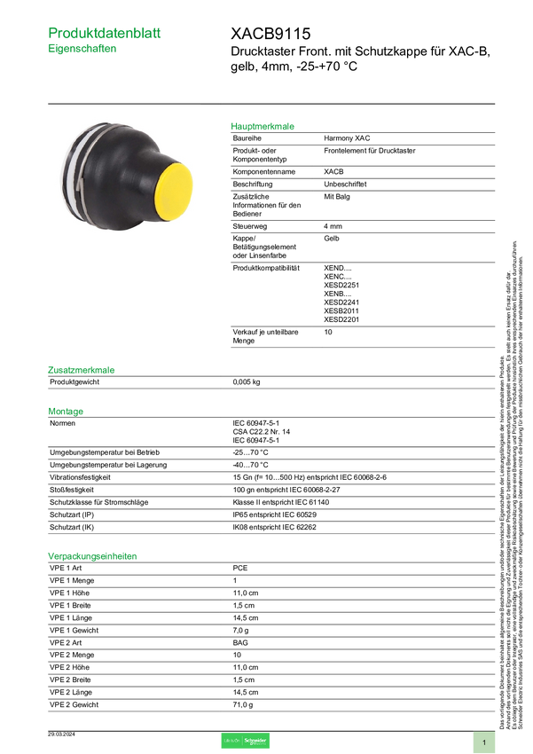 Schneider Electric XACB9115 Element przedni z przyciskiem 1 szt.