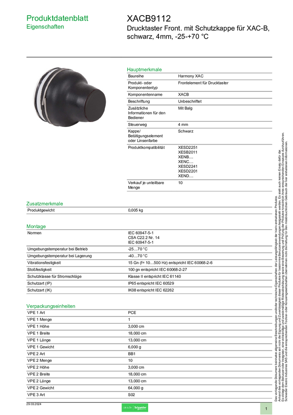 Schneider Electric XACB9112 Element przedni z przyciskiem 10 szt.
