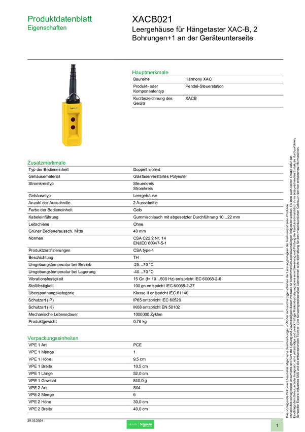 Pusta obudowa Schneider Electric XACB021 1 szt.
