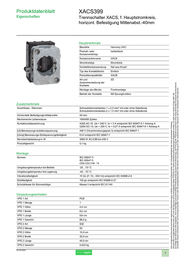 Most rozdzielający Schneider Electric XACS399, 1 szt.
