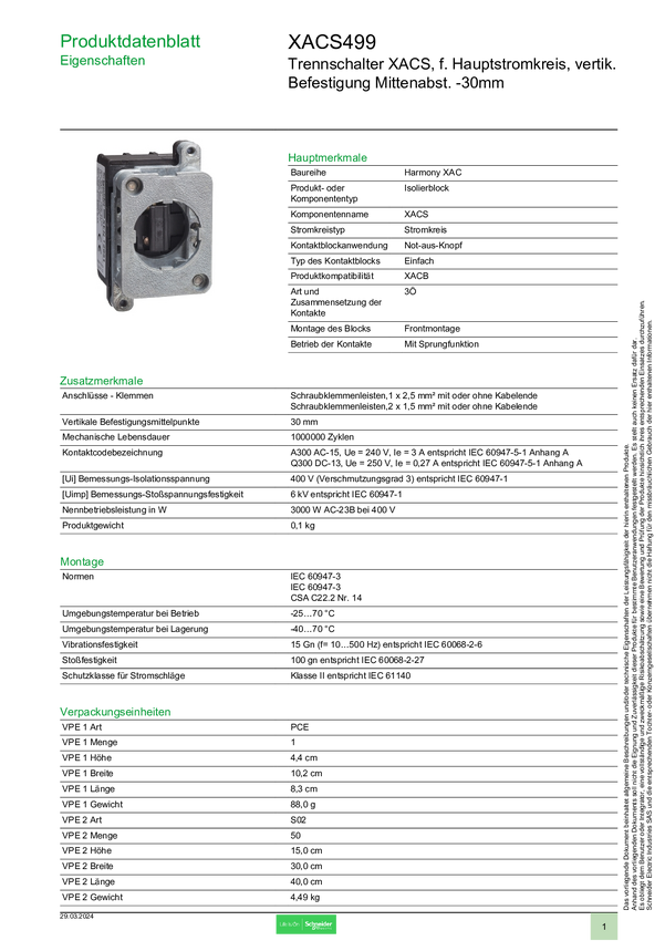 Most rozdzielający Schneider Electric XACS499, 1 szt.