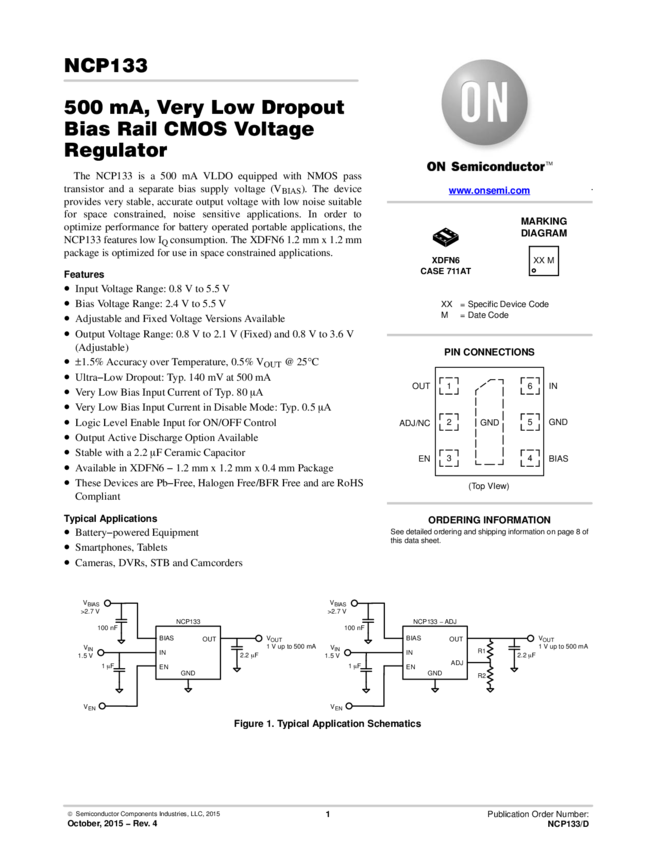 LDO Regulator Pos 0.8V to 3.6V 0.5A 6-Pin XDFN T/R