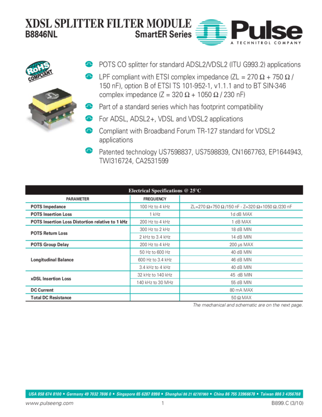 XDSL Splitter Filter 4-Pin