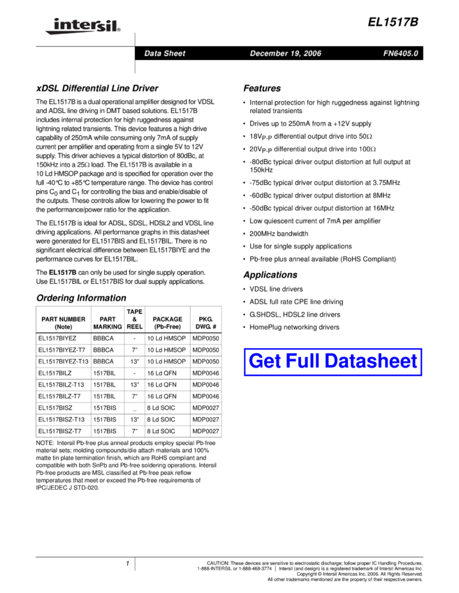 12V xDSL Differential Line Driver with Enhanced Output Protection