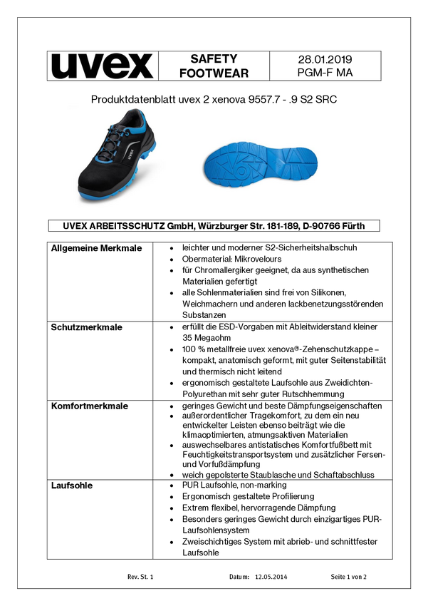 uvex 2 xenova® 9557839 ESD Obuwie ochronne S2 Rozmiar buta (EU): 39 czarny, niebieski 1 par(a)