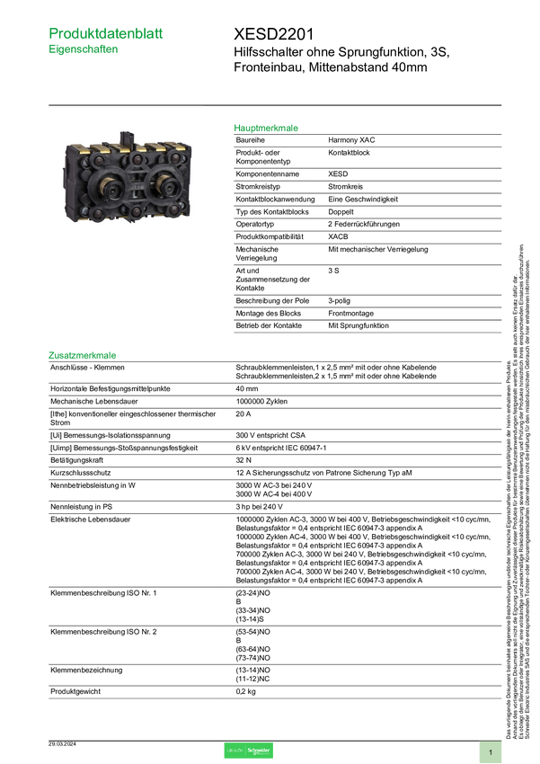 Schneider Electric XESD2201 Przełącznik pomocniczy 1 szt.