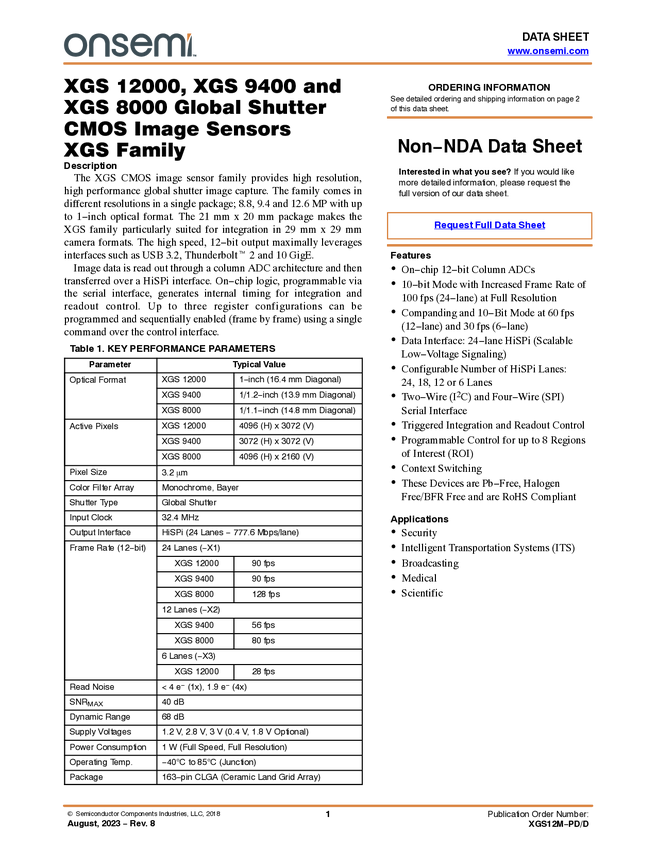 CMOS Image Sensor, 44.7 Mp, Global Shutter