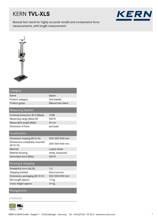 Ręczne stanowisko testowe (1 szt.) Kern TVL-XLS