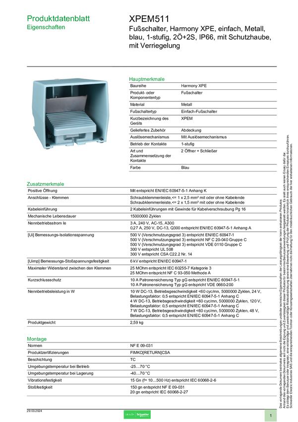 Schneider Electric XPEM311 Przełącznik nożny, 1 szt.