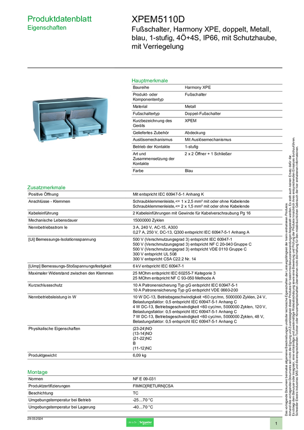 Schneider Electric XPEM5110D Przełącznik nożny, 1 szt.