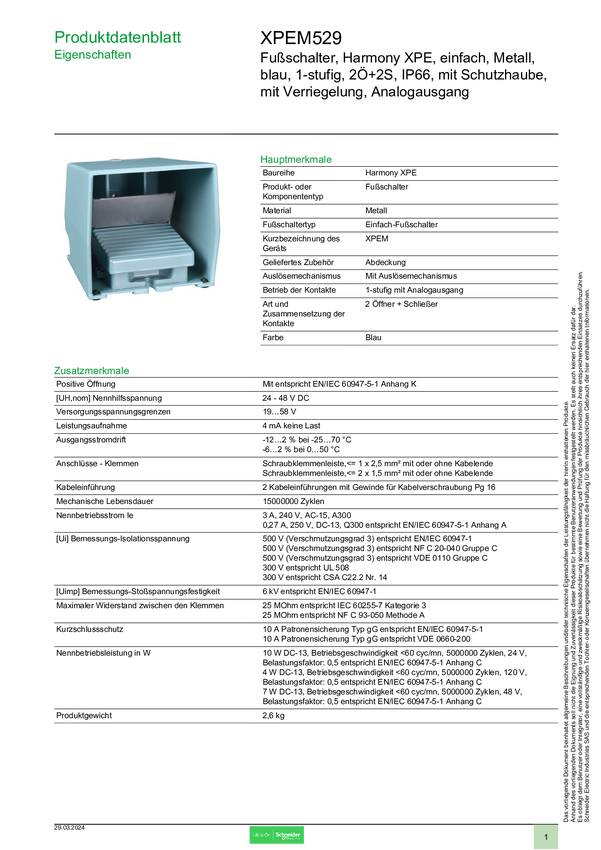 Schneider Electric XPEM529 Przełącznik nożny, 1 szt.