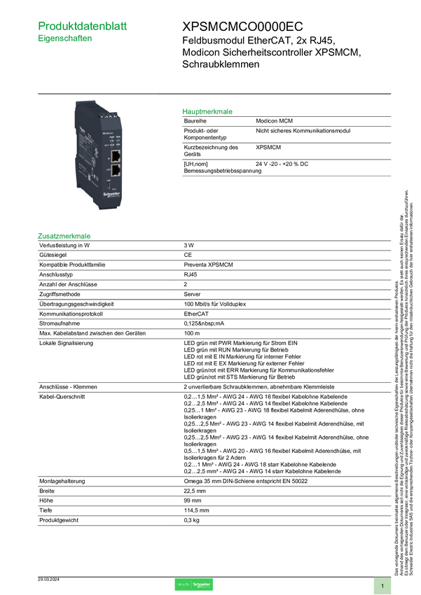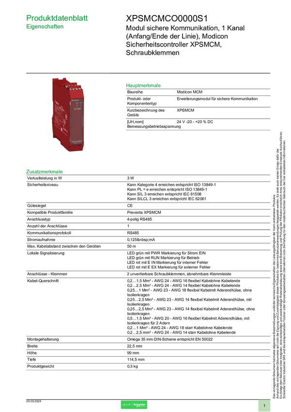Moduł rozszerzeń Schneider Electric XPSMCMCO0000S1G XPSMCMCO0000S1G