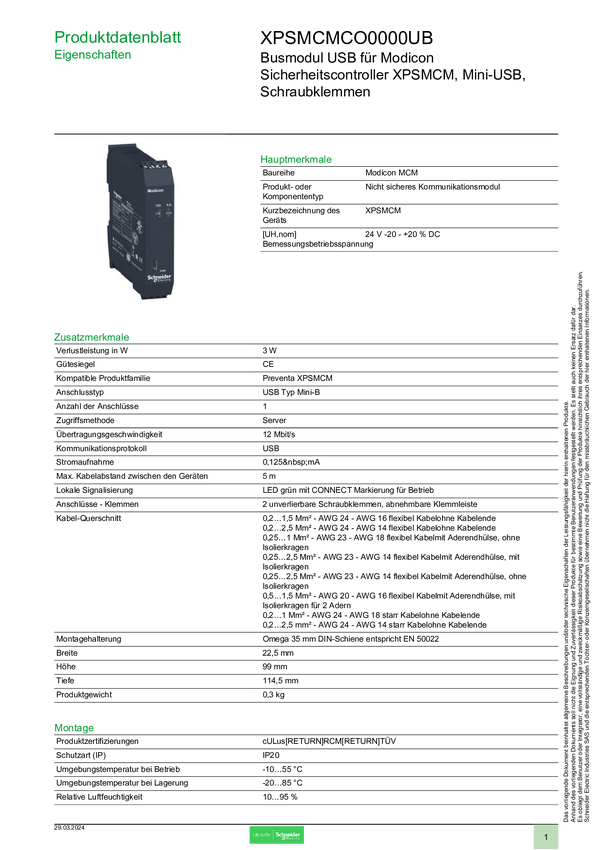 Moduł rozszerzeń Schneider Electric XPSMCMCO0000S1 XPSMCMCO0000S1