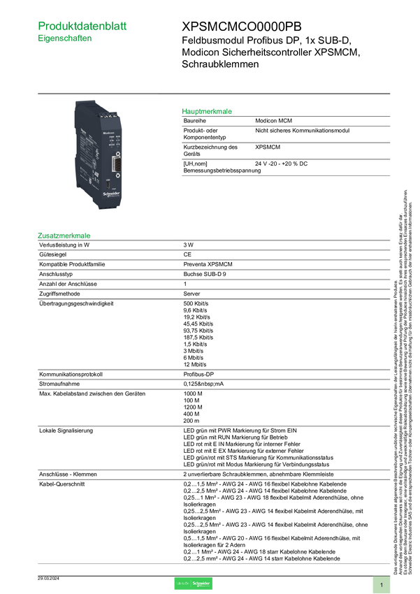 Moduł rozszerzeń Schneider Electric XPSMCMCO0000PBG XPSMCMCO0000PBG