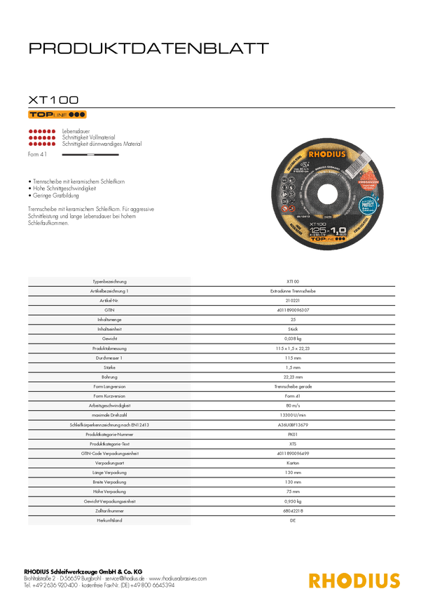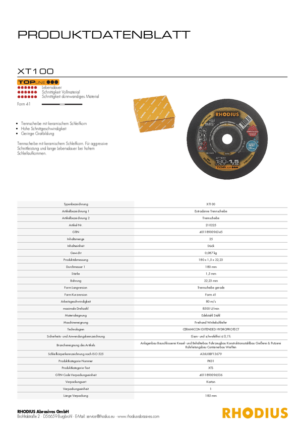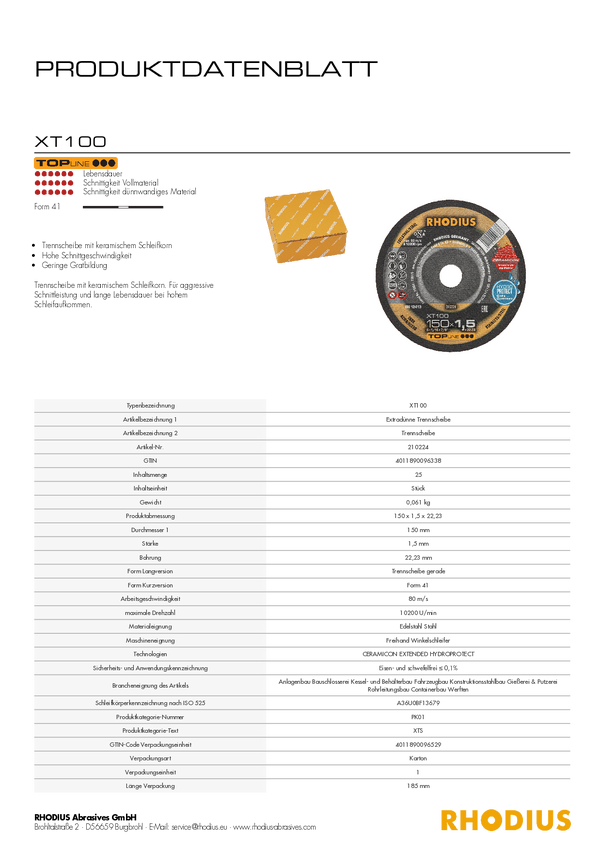 Tarcza tnąca Rhodius XT100 210222 25 szt.