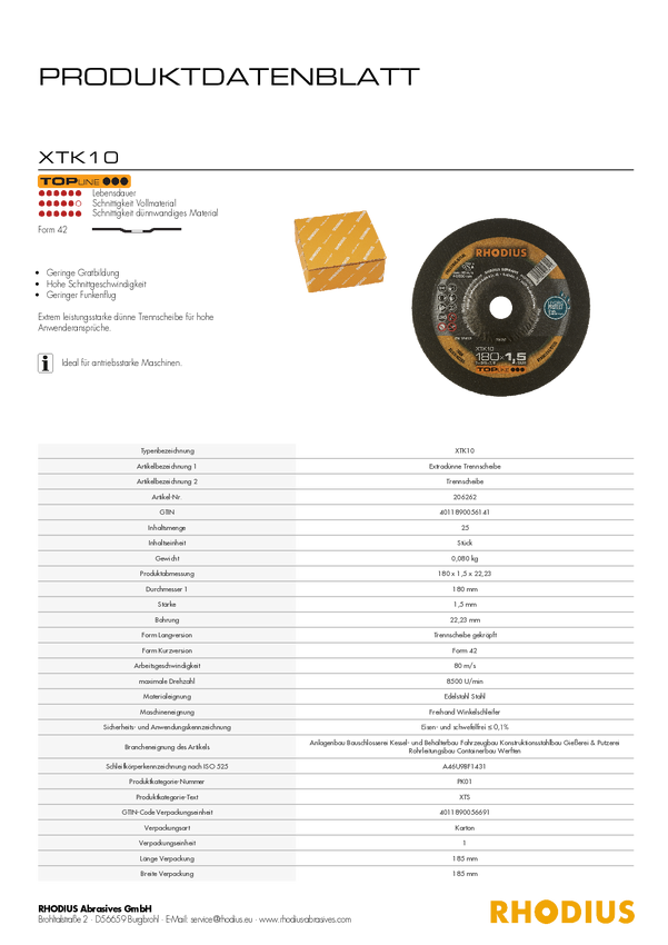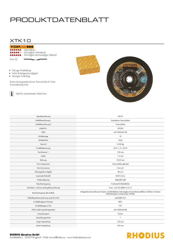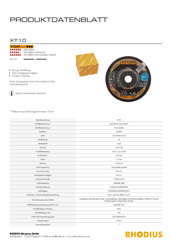 Tarcza tnąca Rhodius XT10 209822 50 szt.