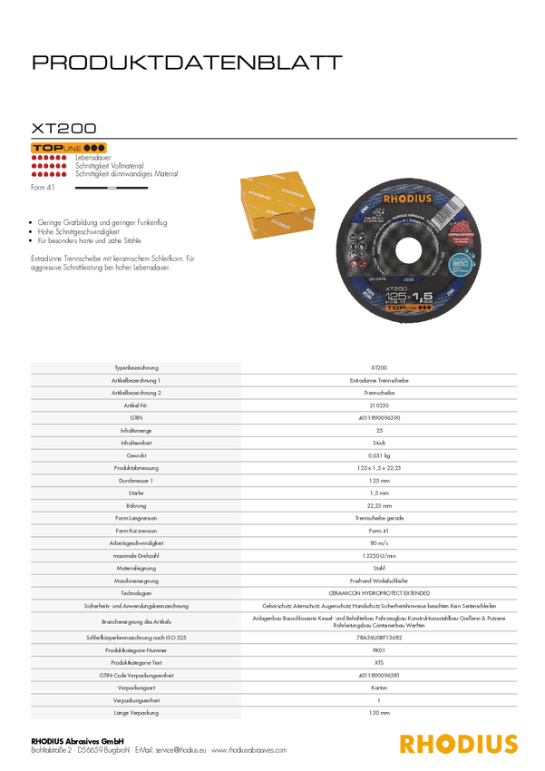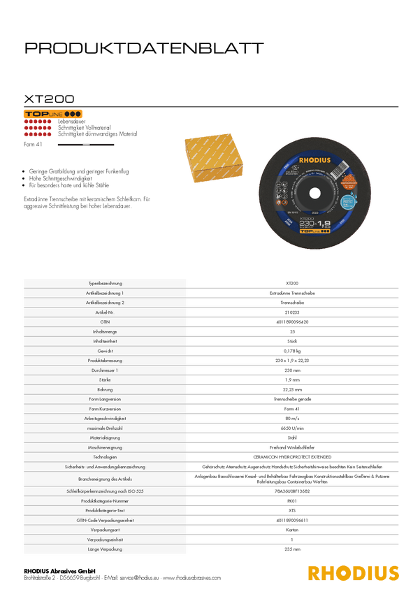 Tarcza tnąca Rhodius XT200 210232 25 szt.