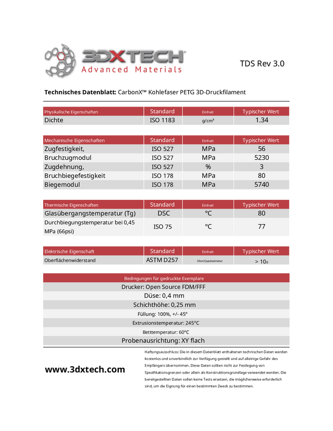 3D Xtech NYL3010500BK0 CarbonX CF Polyamid PA6 Filament do drukarek 3D PA (Poliamid) odporny na chemikalia 1.75 mm 500 g