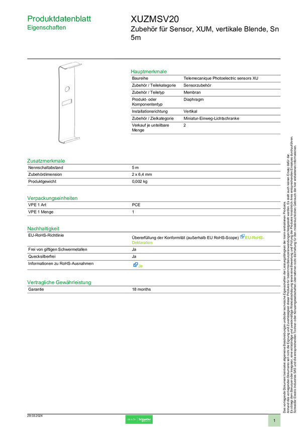 Schneider Electric XUZMSV20 Pokrywa 1 szt.