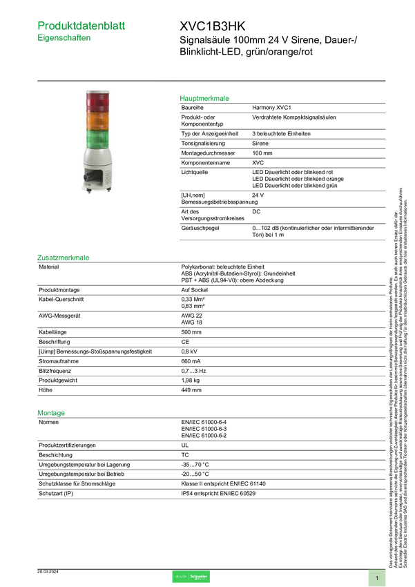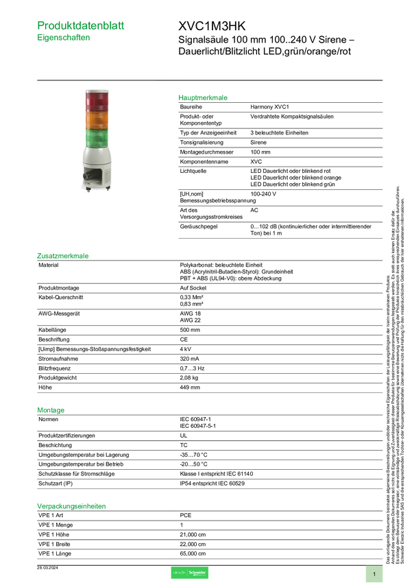 Kolumna sygnalizacyjna Schneider Electric XVC1M3K XVC1M3K 1 szt.