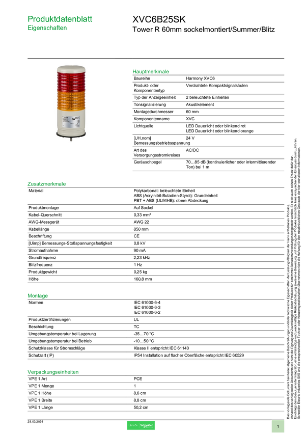 Kolumna sygnalizacyjna Schneider Electric XVC6B25SK XVC6B25SK 1 szt.