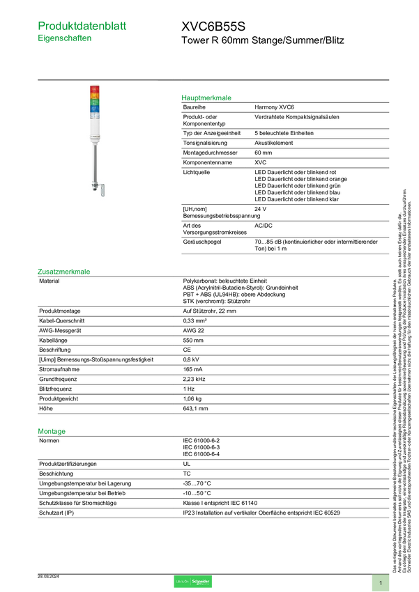 Kolumna sygnalizacyjna Schneider Electric XVC6B55S XVC6B55S 1 szt.