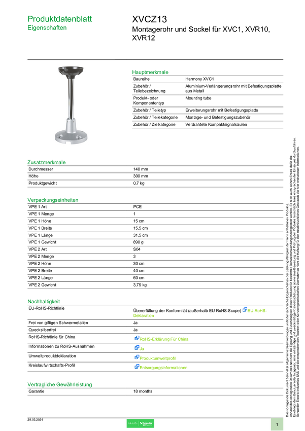 Kolumna sygnalizacyjna Schneider Electric XVC4B1 XVC4B1 1 szt.