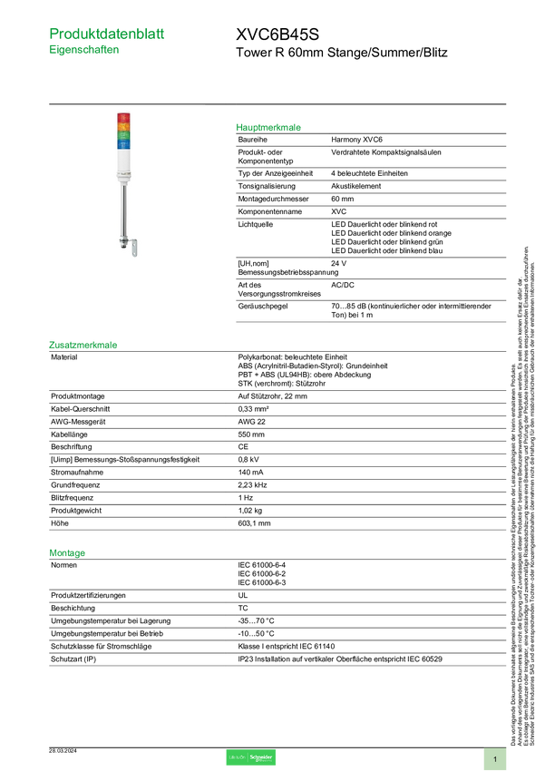 Kolumna sygnalizacyjna Schneider Electric XVC6B45S XVC6B45S 1 szt.