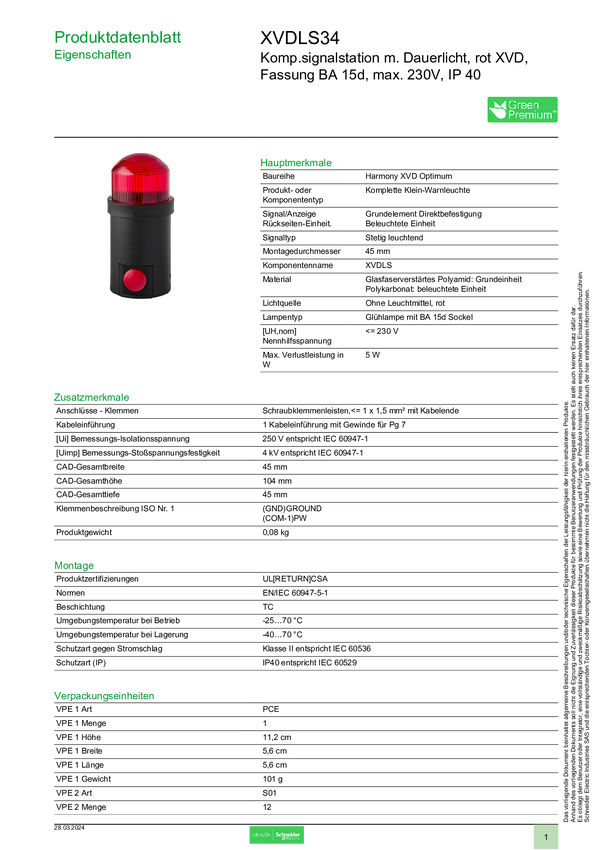 Kolumna sygnalizacyjna Schneider Electric XVDLS34 1 szt.