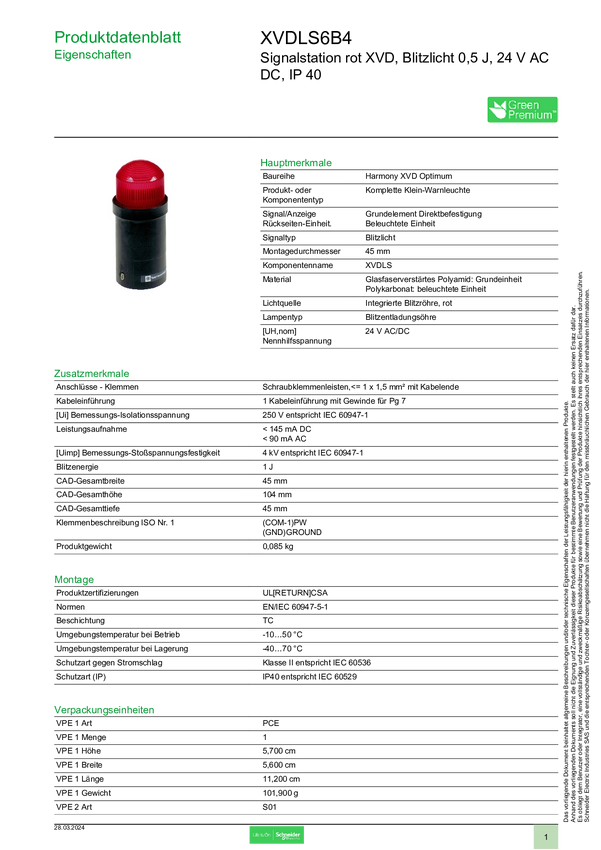 Kolumna sygnalizacyjna Schneider Electric XVDLS6B4 1 szt.