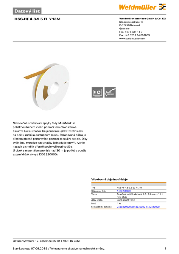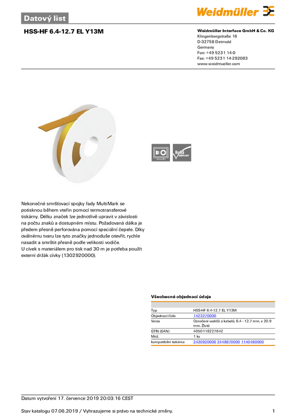 Weidmüller 1423230000 HSS-HF 1.6-3.2 EL Y13M System znakowania kabli żółty 1 szt.